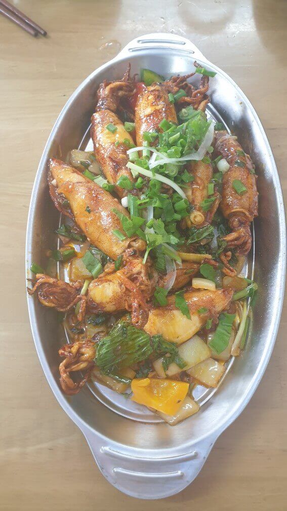 오징어 요리는 숯불향이 나면서 맛있었어요.