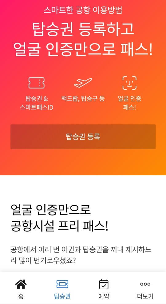 탑승권 등록하고 얼굴 인증만으로 패스!